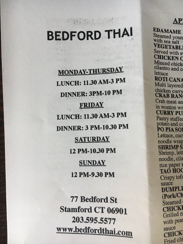 Bedford Thai Menu